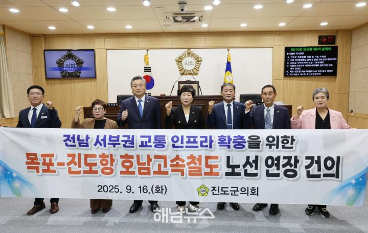 The Jindo County Council (Chairperson Park Geum-rye) unanimously adopted a proposal to extend the Honam High-Speed Rail Line from Mokpo to Jindo Port during its 310th special session held on the 16th.