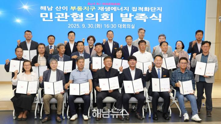 지난달 30일 해남군청 대회의실에서는 ‘해남 산이 부동지구 재생에너지 집적화단지 민관협의회’ 발족식이 열렸다.