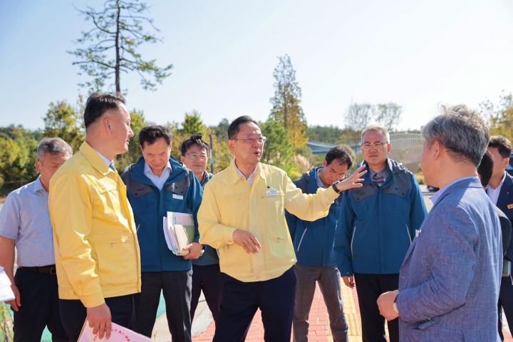 On October 10, County Mayor Myung Hyun-gwan held an on-site briefing at Solarsido Enterprise City in Sane-myeon to review overall preparations, including temporary parking arrangements, traffic management, and tourism measures.