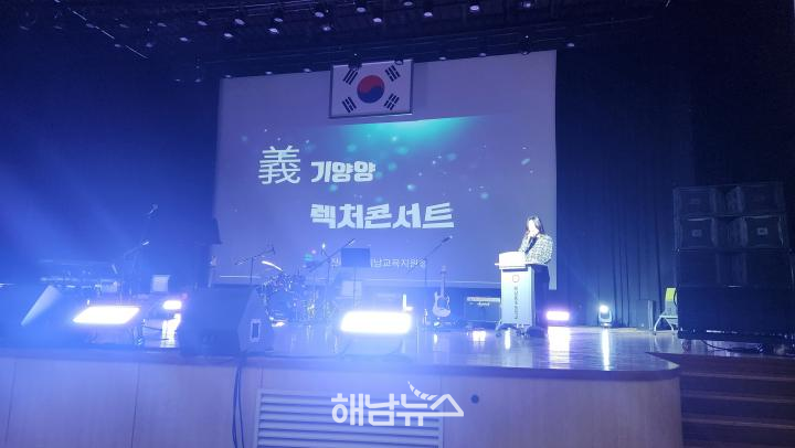 The Haenam Office of Education (Superintendent Cho Yeon-joo) held the “Yi Sun-sin Righteous Spirit Lecture Concert” on October 15 at 7 p.m. at the Haenam Dreamnuri Center, targeting third-grade students and parents of Haenam-dong Elementary School.