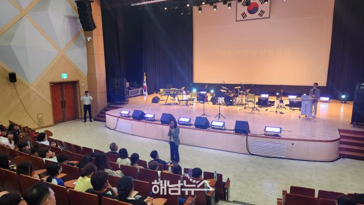 전라남도해남교육지원청(교육장 조연주)은 10월 15일 오후 7시 해남 꿈누리센터에서 해남동초등학교 3학년 학생과 학부모를 대상으로 ‘이순신 義기양양 렉쳐콘서트’를 개최했다.