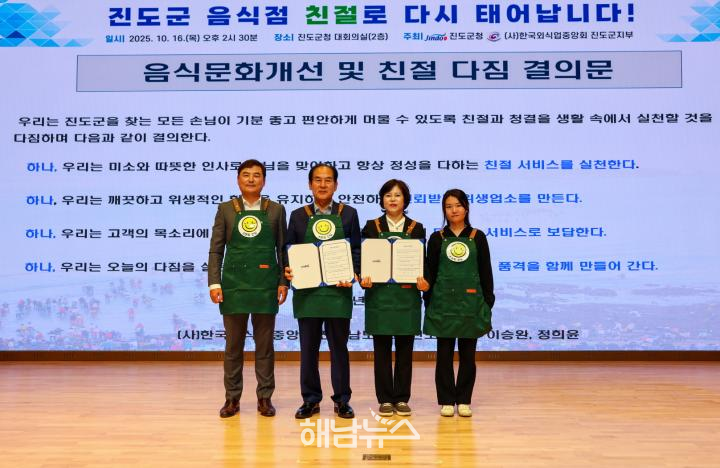 Jindo County has held a “Restaurant Service Education and Resolution Rally” to restore its image and rebuild tourist trust following recent reports of discourteous behavior at some local restaurants.