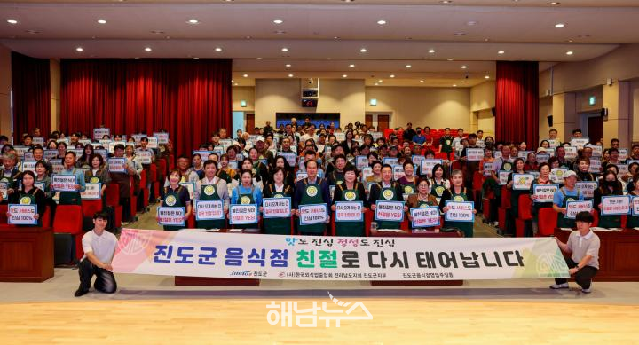 진도군이 최근 일부 음식점의 불친절 논란으로 인해 지역 이미지가 훼손된 데 따라, 관광객 신뢰 회복과 친절 문화 정착을 위해 ‘음식점 친절 서비스교육 및 결의대회’를 개최했다.
