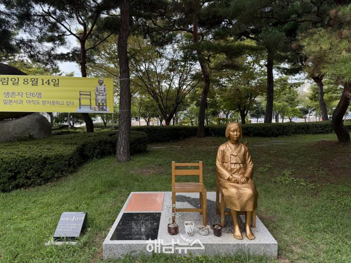 해남군이 해남공원 내 평화의 소녀상 보수공사를 완료하며 시민들에게 새롭게 단장한 모습을 선보였다.
