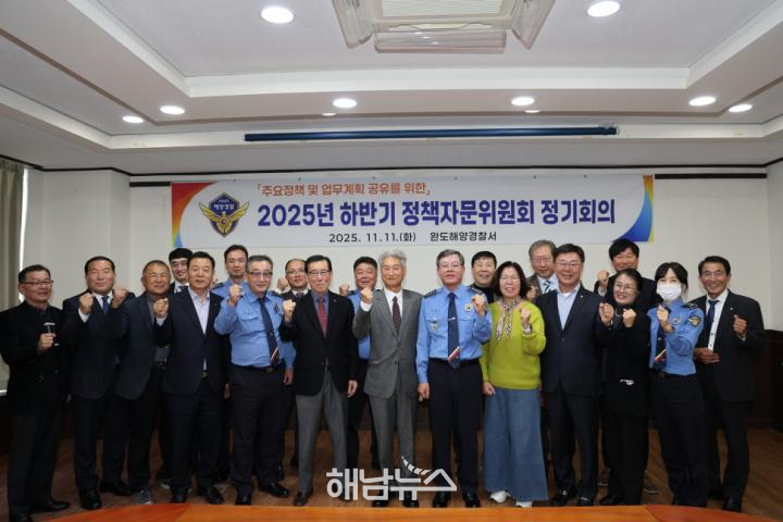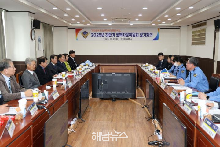 완도해양경찰서(서장 김길규)는 11일 해양 안전 정책의 추진 방향을 논의하고 현장 중심의 치안 역량을 강화하기 위해 ‘2025년 하반기 정책자문위원회 정기회의’를 열었다.