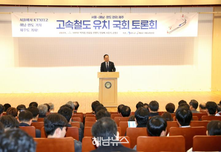 명현관 해남군수는 토론회에서 “서울~제주 고속철도는 해남과 완도의 교통 인프라를 근본적으로 바꾸는 사업”이라며 “제5차 국가철도망 구축계획 반영은 전남 서남권 발전의 출발선이자, 국가균형발전의 실질적 시험대”라고 밝혔다.
