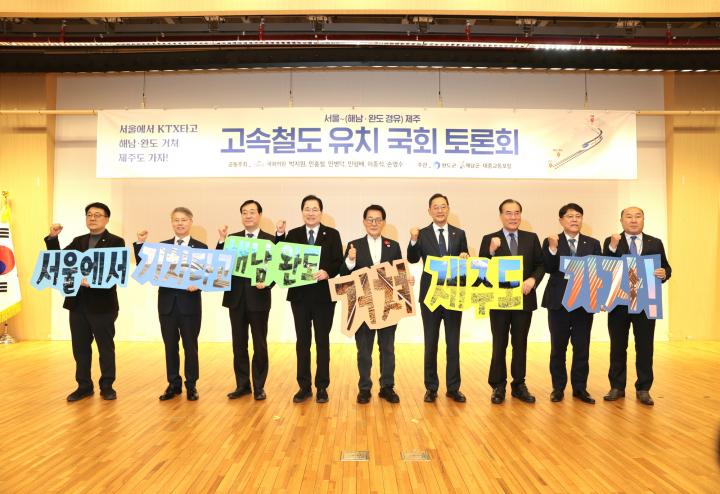 이번 토론회는 서울~제주 고속철도 사업을 제5차 국가철도망 구축계획에 반드시 반영해야 한다는 공감대를 형성하기 위해 마련됐으며, 해남·완도·진도 지역구 박지원 국회의원을 비롯해 민홍철·민병덕·민형배·허종식·손명수 의원이 공동 주최했다.