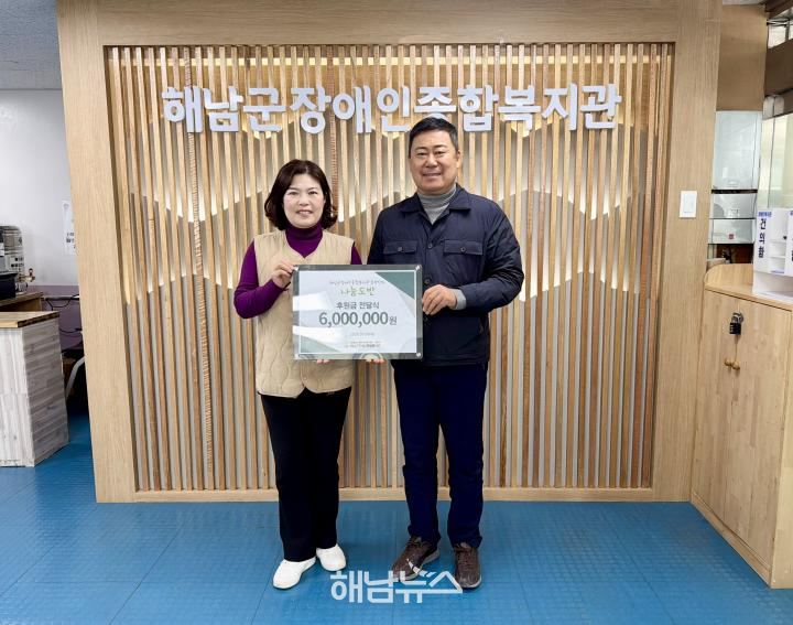 The Haenam County Welfare Center for the Disabled (Director: Kim Do-young) announced that its supporters’ association, Nanumdoban, donated KRW 6 million on December 31 to help improve welfare services for people with disabilities in the local community.