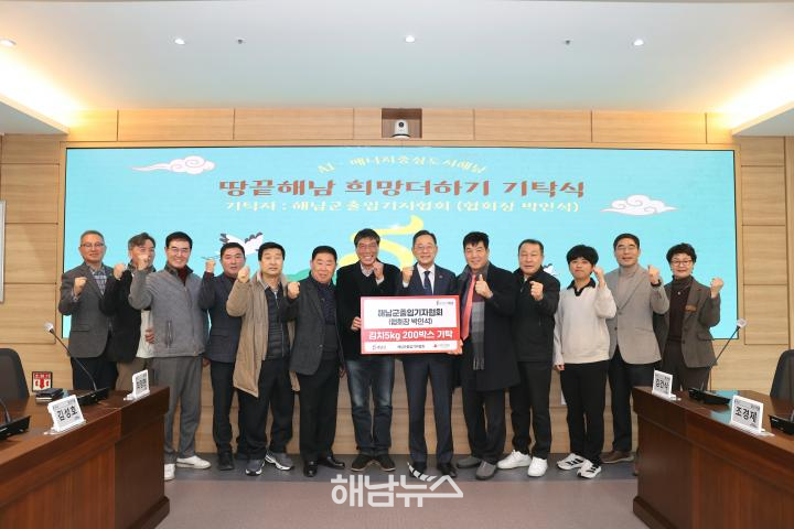 이날 박인석 회장은 명현관 해남군수에게 김치 5kg 200박스를 전달하며, 지역 곳곳에 따뜻한 마음을 보탰다.
