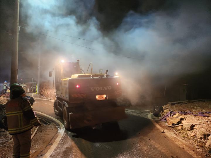 Three Houses Destroyed in Bukpyeong-myeon Fire… Injured During Initial Firefighting Attempt
