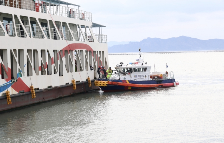 완도해경과 KOMSA(한국해양교통안전공단)·완도소방서·완도운항관리센터 등이 참여한 이번 훈련은 최근 여객선을 이용한 전기차 운송이 증가함에 따라, 선박 내 밀폐 공간에서 발생할 수 있는 화재 대응 능력을 올리기 위해 실시됐다.