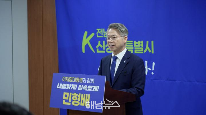 더불어민주당 민형배 국회의원(광주 광산을)이 전남·광주 통합특별시 초대 시장 선거 출마를 공식 선언하며 남부권 미래 경제 구상을 제시했다.