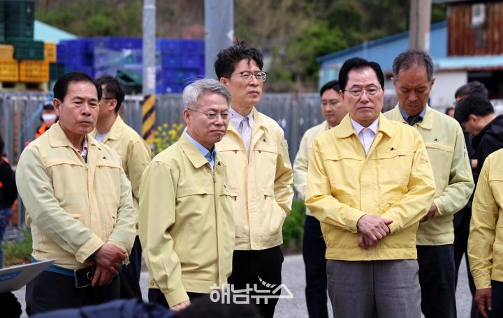 Min Hyung-bae, a candidate in the Democratic Party’s primary for the Jeonnam–Gwangju Special Metropolitan City mayor and a member of the National Assembly (Gwangju Gwangsan-eul), expressed deep condolences for the two firefighters who lost their lives while battling a factory fire in Wando. He immediately suspended his campaign schedule and visited the scene.