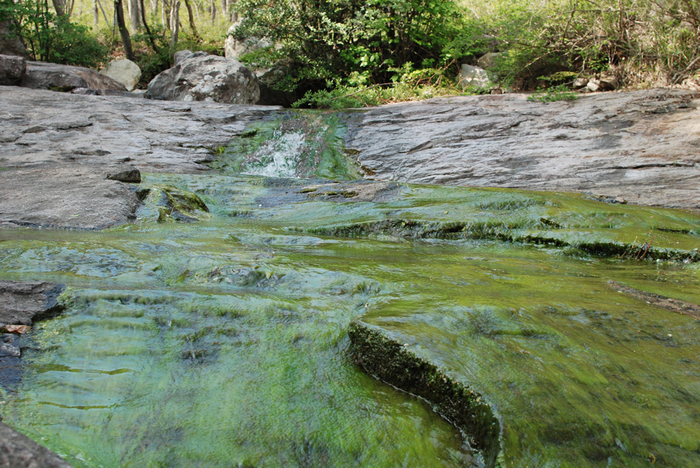 ▲ 해남읍 금강곡 녹조현상 광경 © 해남방송맑은 물이 상징이던 해남 금강곡은 현재 하루가 멀다 하고 녹조가 확산되고 있다. 많고 적음의 차이가 있을 뿐 금강곡 상류에서부터 하류에 이르기까지 금강곡 전 구간에서 녹조가 자라고 있는 모습을 쉽게 볼 수 있다. 일부 구간에서는 암반을 시퍼렇게 뒤덮은 녹조가 목격된다.과학을 담당하는 김 모 교사는 “계곡에 녹조가 발생하는 이유는 대부분 등산객들이 버린 음식물 쓰레기 때문”이라고 했다. 음식물 쓰레기는 유기물로 미생물의 성장을 돕는데 그 때문에 녹조가 발생할 수 있다는 것이다.김 교사는 또 “계곡 주변에 석분을 깔게 되면 석분이 빗물에 씻겨 내려가 계곡이 중성화되면서 녹조가 자랄 수 있다”고 설명했다. “석분은 여러 가지 성분의 물질을 함유하고 있는데, 그 중 석회 성분은 산성인 땅을 중화시키고 그것이 계곡물에 흘러들어가게 되면 유기물이 자랄 수 있는 환경을 제공한다”는 것이다. 김 교사는 “녹조가 오염된 수질을 개선하는 효과도 가져올 수 있지만 계곡에 녹조가 자란다는 것은 그 물이 이미 1급수의 수질이 아니라는 것은 증명하는 셈”이라고 말했다. 실제 김 교사의 주장을 뒷받침할만한 상황도 있었다. 해남군이 석분을 깔지 않은 ‘금강곡쉼터’에서는 녹조의 흔적을 발견할 수 없었다.해남방송(http://hbcnews.kr/ )*계열사:/폭로닷컴http://www.pokronews.com/,해남방송http://hbcnews.kr/,인터넷신안신문(http://sanews.co.kr),목포시민신문http://www.mokposm.co.kr/,신안신문(주간),폭로닷컴광주전남 http://pokro.kr/*기사제휴협력사-/진실의길http://poweroftruth