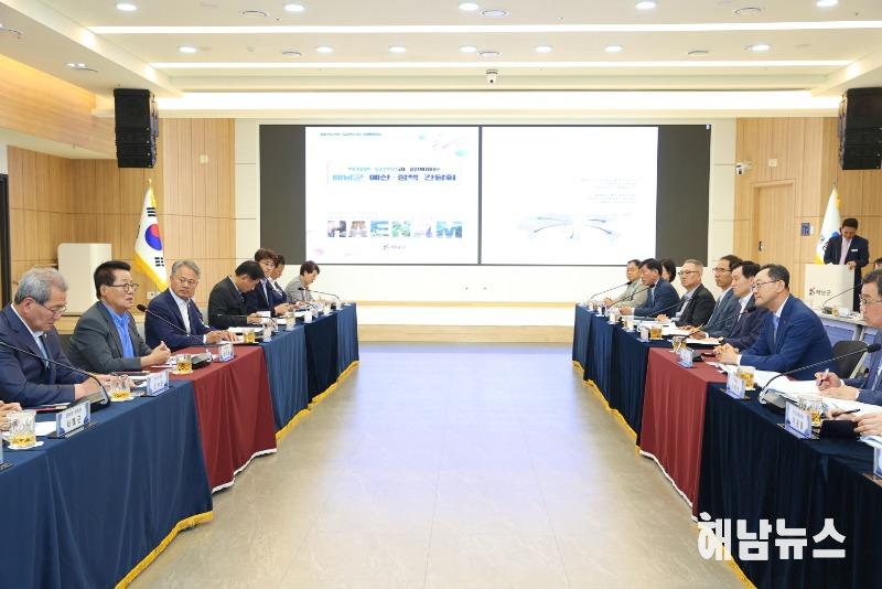 군은 광주~영암~해남 고속도로 건설계획의 반영과 공공기관2차이전에 따른 수협중앙회 등 해남이전,외국인 계절근로자 유치 정부단위 전담기관 설치,수산양식기자재 육성 관련 법률 제정 등 정책 건의와 함께 국립농식품기후변화대응센터 조성,탄소중립 클러스터 조성,김육상 양식 연구개발 공모 선정,지역특화형 임대 스마트팜 조성 등 추진 중인 사업에 대한 지속적인 관심과 지원,예산 확보를 건의하기도 했다.