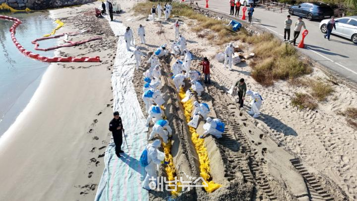 현장에는 고압세척기, 유회수기, 오일펜스, 트랙터, 굴삭기 등 방제 장비가 총동원됐으며, 모래·자갈·석축 등 해안 지형별 맞춤 방제기법이 실전과 같이 전개됐다.