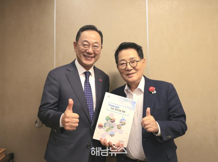 ![]() -명현관 군수 국회방문 (박지원 국회의원) / 사진제공=해남군수 |