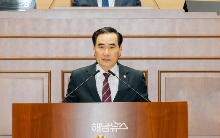 본 의원은 오늘, 해남군의 향후 수십 년을 좌우할 광주·전남 행정통합 논의에 대해 매우 무거운 문제의식을 가지고 이 자리에 섰습니다.
