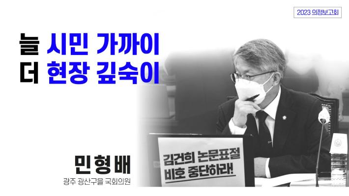 Rep. Min Hyung-bae of the Democratic Party of Korea (Gwangsan-eul, Gwangju) has officially announced his candidacy for the inaugural mayoral election of the Jeonnam–Gwangju Special City, scheduled to be launched this July.