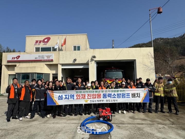 완도소방서(서장 이민석)는 지난 4일, 화재 등 각종 재난 발생 시 신속하고 안정적인 현장 대응을 위해 도서지역인 금당도에 신규 동력소방펌프를 배치하는 행사를 실시했다고 밝혔다.