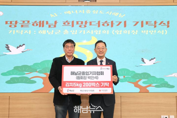 2026년 2월 11일 오전 11시, 해남군 출입기자협회(회장 박인석)는 해남군 14개 읍·면의 어려운 이웃들을 위해 ‘사랑의 김치 나눔’ 전달식을 가졌다.