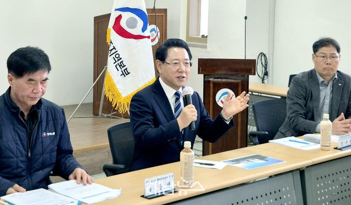 박만 광주은행 노동조합 위원장은 한국노총 광주지역본부의 열악한 사무환경 개선과 노동계 활동 기반 강화를 위한 지원 필요성을 건의했다.