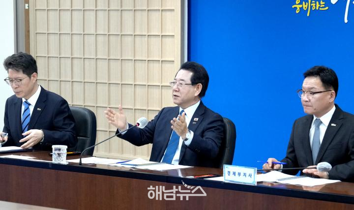 At a senior policy meeting held on March 3 at the provincial office, Governor Kim stated, “The foremost task of administrative integration is attracting industry,” adding, “We will build a growth structure in which no region and no social group is left behind, ensuring that both Jeonnam and Gwangju prosper together.”