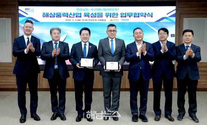 전남도는 3일 도청 서재필실에서 두산에너빌리티와 ‘해상풍력 산업 육성을 위한 업무협약(MOU)’을 체결했다.