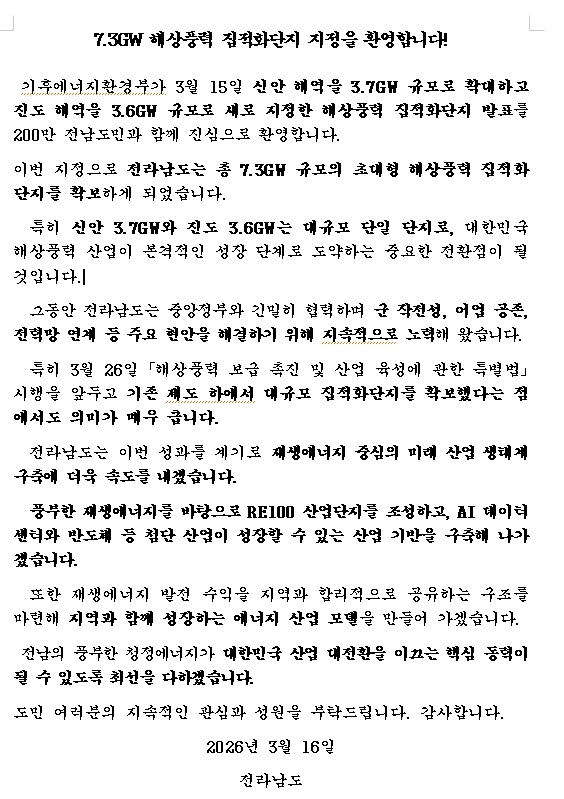 ![]() 해상풍력 집적화단지 지정 환영문 |