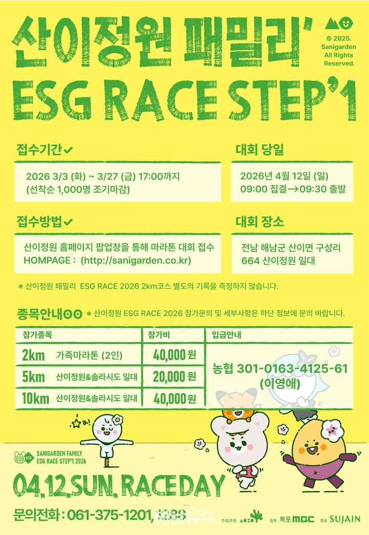 Sani Garden, located in Sani-myeon, Haenam, announced that it will host the “Sani Garden ESG RACE STEP Marathon” on April 12 as a key program of the Sani Garden ESG Festival.