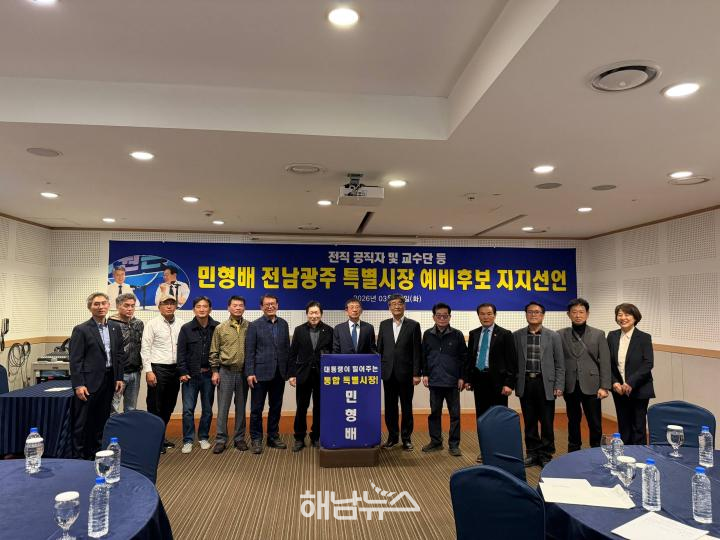 민형배 경선사무소 ‘민심캠프’는 26일 “전남·광주 지역 전직 공직자와 교수 125인이 지난 24일 광주 홀리데이인호텔 컨벤션홀에서 민형배 전남·광주특별시장 예비후보 지지를 선언했다.”고 밝혔다.