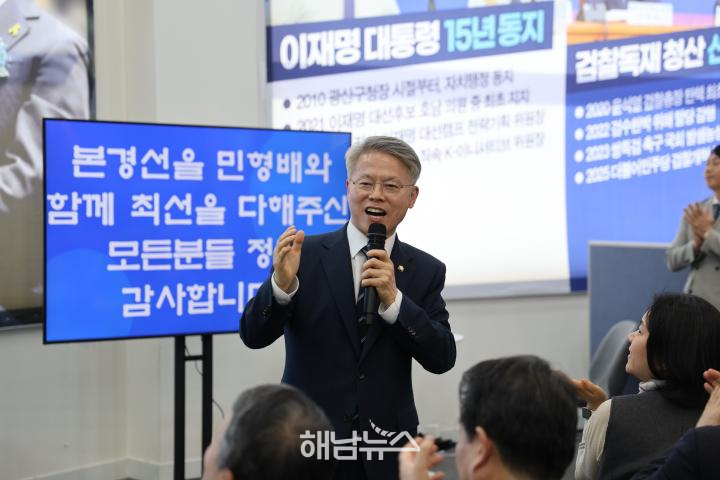 승리의 그날까지 흔들림 없이, 그러나 가장 낮은 자세로 뛰겠습니다. 더 큰 통합, 더 강한 전남·광주로 힘차게 나아가겠습니다.