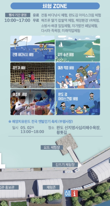 5월 5일 어린이날 11시에는 해조류와 전복을 곁들인 226m의 ‘치유 김밥 만들기’도 진행되며, 군민·관람객이 함께 이색적인 김밥을 만들고 맛볼 수 있다.