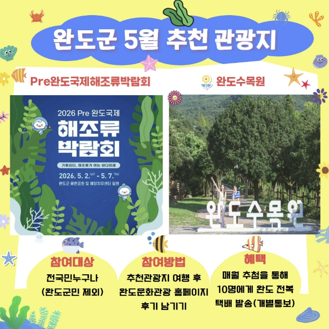 ![]() 완도군, 5월 추천 관광지 '국제해조류박람회·수목원' |